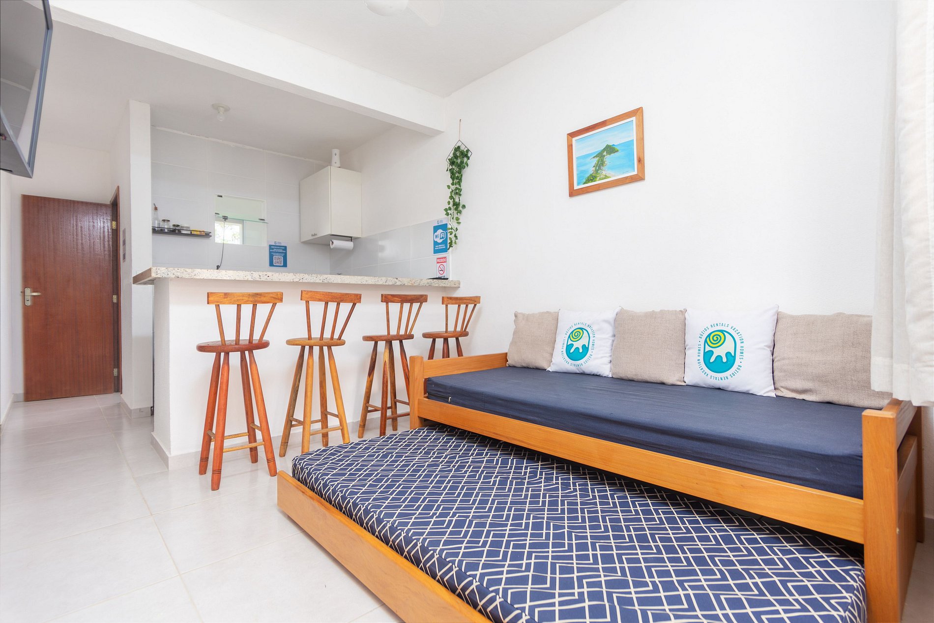 Nossos apartamentos são privativos e estão num condomínio com amplo quintal, vista verde, piscina com jacuzzi, área gourmet com churrasqueira e fogão a lenha, estacionamento gratuito e Wi-Fi em toda a propriedade. As unidades possuem quartos amplos, sala, banheiro, área de serviço, cozinha completa com utensílios para todo tipo de refeição, TV HD com canais e Netflix, ventiladores de teto e outras comodidades. A uma curta distância que pode ser percorrida a pé, há várias praias e mirantes, inclusive um dos pontos mais famosos de Búzios nas redes, a Ponta do Pai Vitório. Tudo que você precisa para uma estadia perfeita! Estamos sempre disponíveis para nossos hóspedes e seguimos todos os protocolos sanitários recomendados.