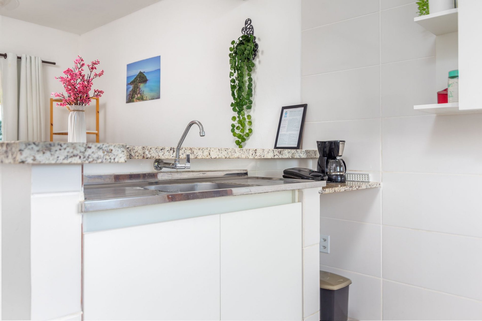Apartamento privativo em condomínio, totalmente equipado e mobiliado com bom gosto. Novo e arejado, conta com um quarto com cama extra grande e ar-condicionado, sala com dois sofás-cama, banheiro, cozinha completa, TV HD, ventiladores e diversas comodidades. Área externa compartilhada com piscina, hidromassagem, churrasqueira, fogão a lenha, amplo jardim, estacionamento e Wi-Fi gratuitos. Localização privilegiada perto de praias e mirantes, ideal para sua estadia!